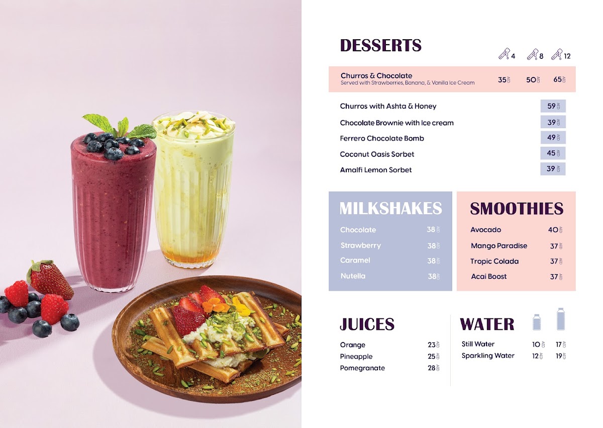 The menu boasts an impressive selection of acai bowls, each carefully crafted to provide a delightful burst of flavors and textures. The Oasis Bowl (Tropical), adorned with mango, kiwi, pineapple, blueberries, coconut flakes, and drizzled with honey, is a visual feast that instantly awakens the senses at AED 55. If you have a penchant for a nutty twist, the Nutty Crunch Bowl combines the sweetness of bananas and strawberries with a generous helping of granola and your choice of nut butter, creating a harmonious balance that satisfies both cravings and dietary desires. The Nutella Bowl is simply irresistible with its layers of banana, strawberries, blueberries, and the rich taste of hazelnut spread, perfect for those who enjoy a touch of indulgence.
